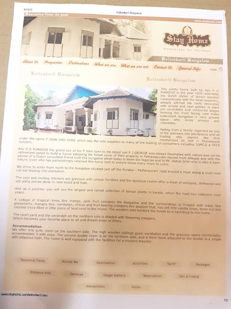 Farm Stay Kollenkeril Bunglow Built during 1930′ with the help of Dutch Engineer Friend by Adv PG Punnoose during his retirement in Pathanapuram with boundaries of forest Kollenkeril Bunglow Entrance from Hill Highway Share this: Share on X (Opens in new window) X Share on Facebook (Opens in new window) Facebook Like Loading...